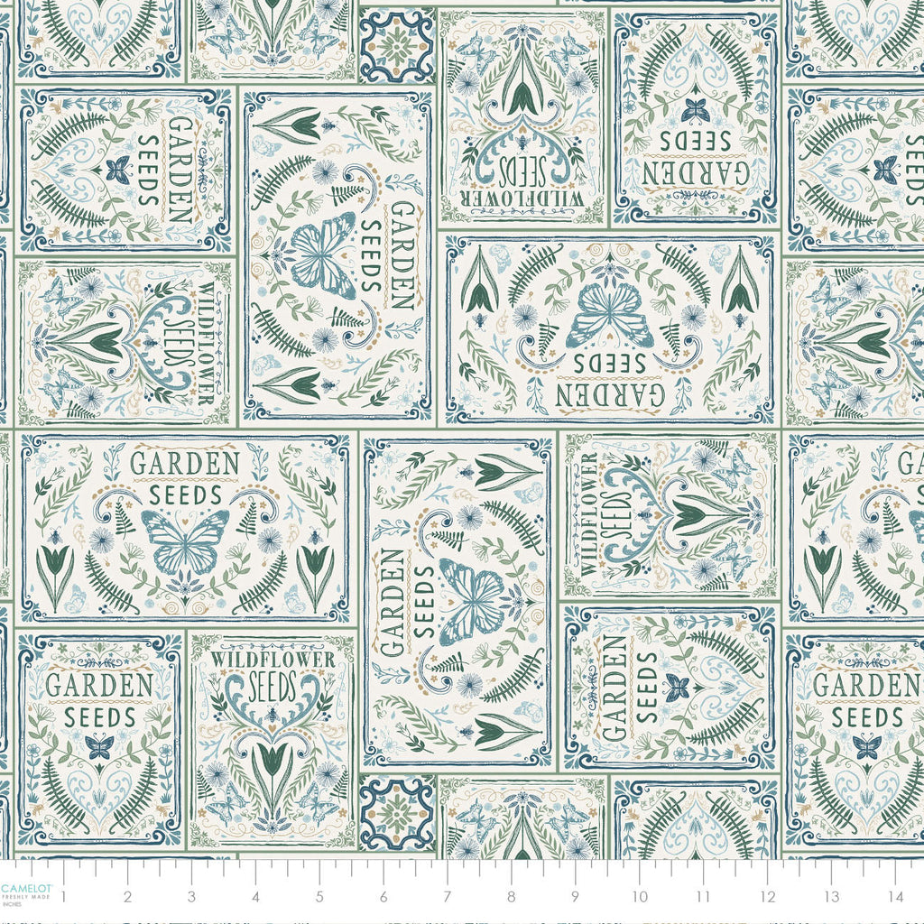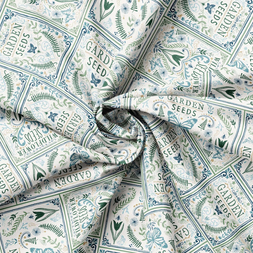 Unearth the enchanting world of Garden Seeds, where nature's secrets come to life in a quilting cotton fabric collection adorned with birds, butterflies, insects, and foliage. Dive into soothing blues, greens, tans, and navy, reminiscent of a flourishing garden. Tonal designs, ideal for piecing and blenders in tulips, fronds, geos and hexies help create a patchwork of garden-inspired delight. Ideal for quilts, home decor and garden essentials like gloves and smocks.