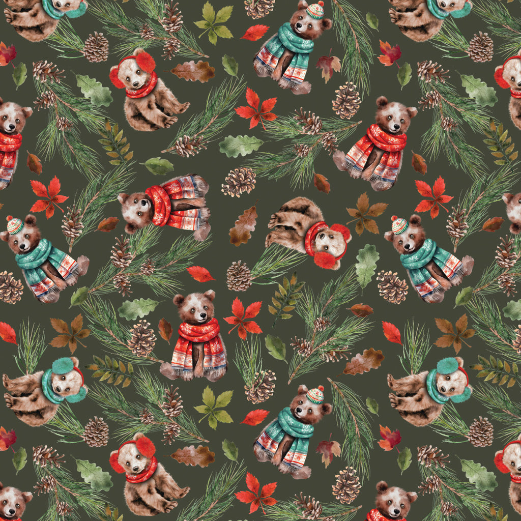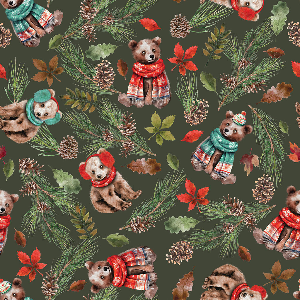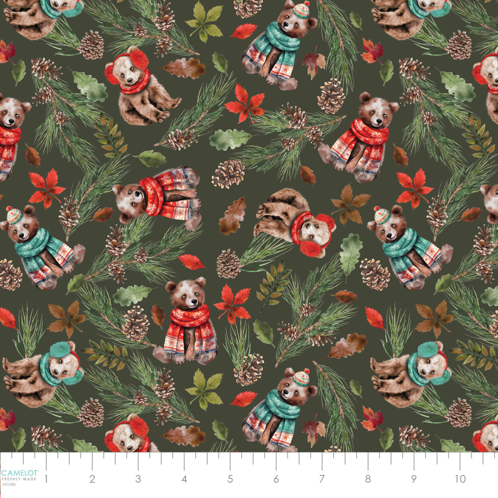 Merry Beary Collection-Cozy Cubs-Dark Green-100% Cotton-21240402-02 – Fabrics 'N Crafts Canada