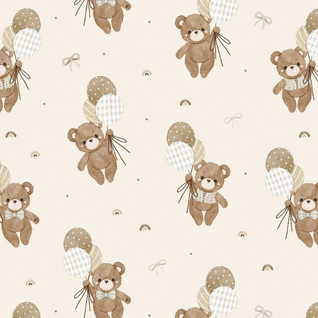 Wrap yourself in the cozy embrace of our premium flannel fabric adorned with teddy bears and balloons, bringing a touch of soft teddy bear charm to your projects. Our Flannel fabric is 42/43” wide with a 150 gsm weight. It is brushed for an amazing hand-feel and ready to be cut by the yard. Composition is 100% cotton. To care for this flannel, machine wash cold, gentle cycle, non-chlorine bleach, tumble dry low, cool iron. Perfect for sewing up loungewear, bathrobes, blankets, slippers and so much more!