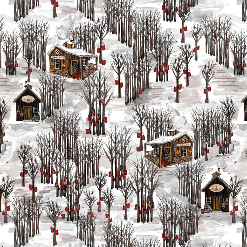 Discover the charm of Fun on Tap, a quilting cotton fabric collection that offers a contemporary twist on a traditional rustic sugar shack. Inspired by the cozy ambiance of a maple syrup farm, this collection features playful birds, sugaring off patchwork, maple syrup motifs, wood grain textures, classic buffalo plaid and a sugaring off panel to round out the assortment, making this collection perfect for creating heirloom pieces to celebrate this beloved tradition.