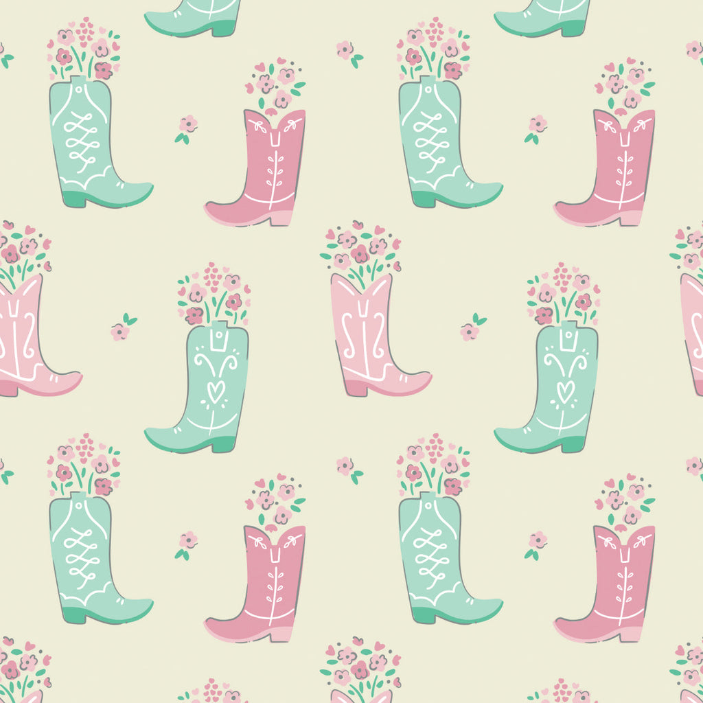 Rodeo Rose Collection-Boots in Bloom-Cream-100% Cotton-21240302-01